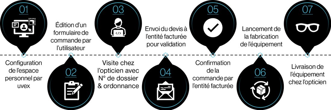 - La suite du processus reste inchangée : l'opticien transmet la commande, qui sera validée puis mise en fabrication et l'équipement sera livré chez l'opticien.